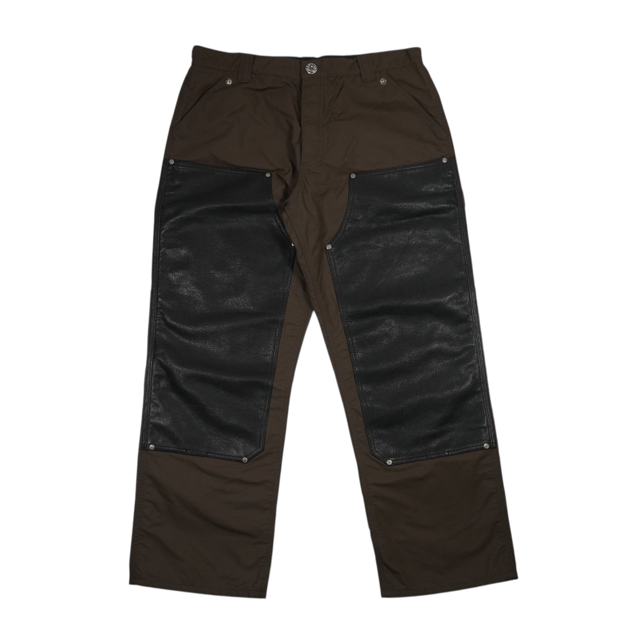 クロスパッチ付きレザー切替ナイロンカーペンターロングパンツCARPENTER DOUBLE KNEE 【キャンバスパンツ】【ブラック×ブラウン】SIZE:36