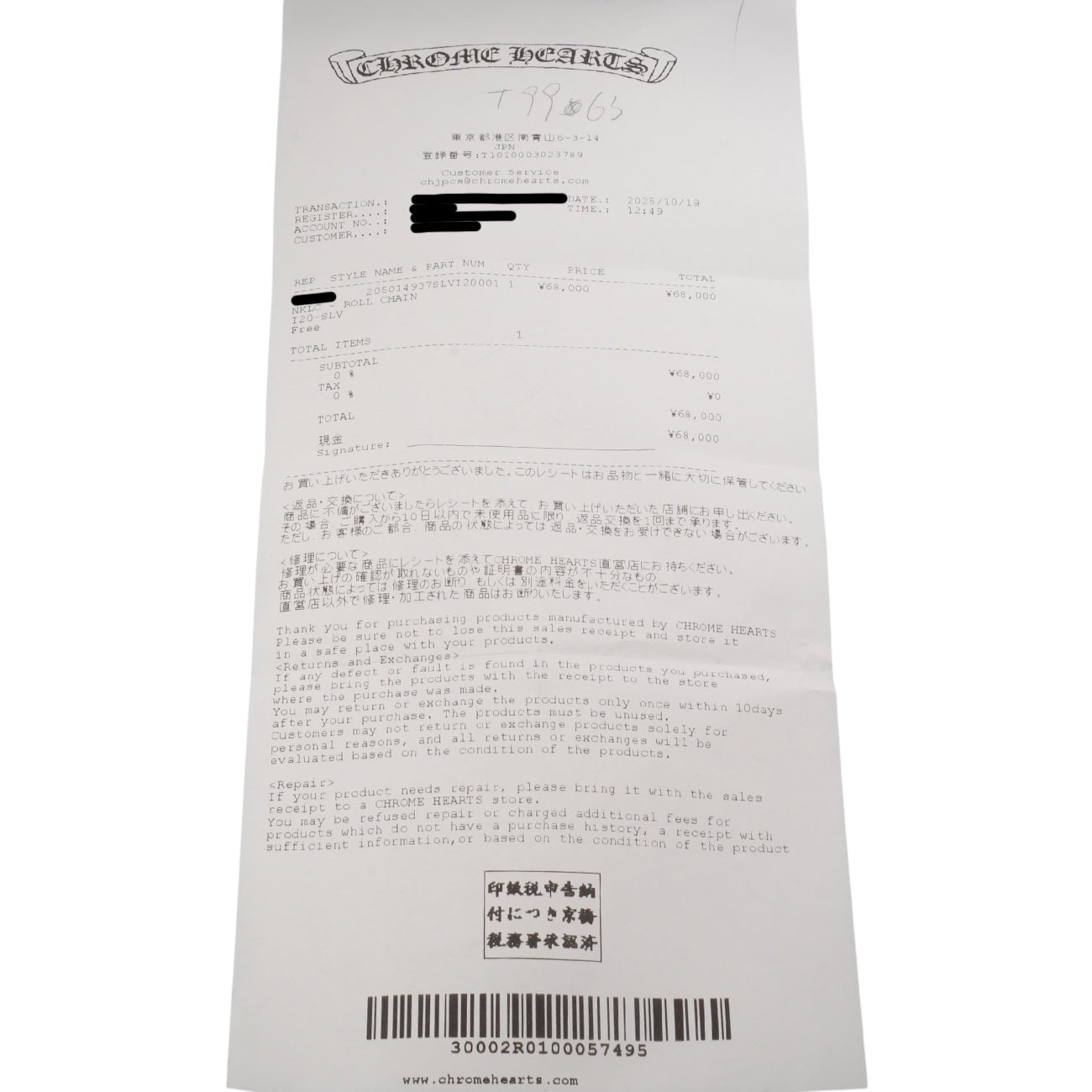 ロールチェーン 20インチ R20 NECK CHAIN 【シルバーネックレス チェーン】インボイス付き